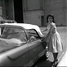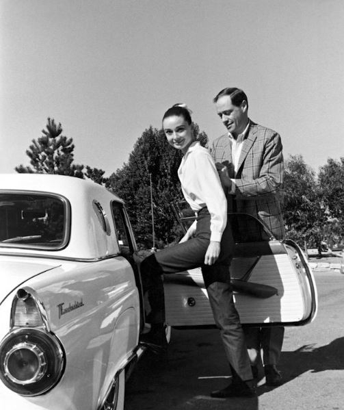 Audrey Hepburn and Mel Ferrer in her 1956 Thunderbird